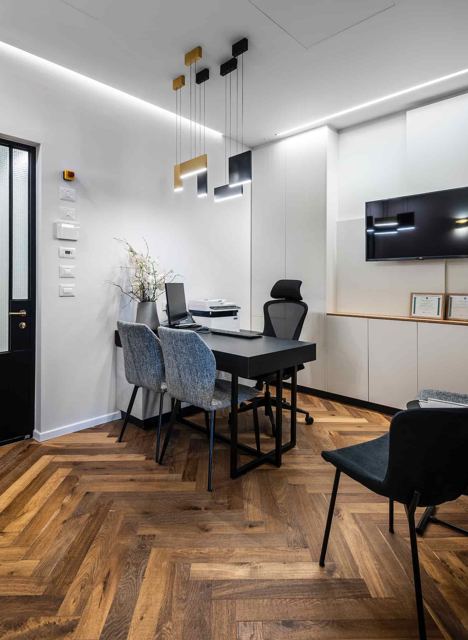 תכנון החלל הראשוני התקבל מאדריכלית שמתמחה בתכנון מרפאות ועל גבי התוכניות ביצעתי דיוקים ועדכונים שנתנו ללקוחה את המענה הנדרש עם ירידה לפרטים לפי הצרכים האישיים שלהם כזוג שעובד יחד.