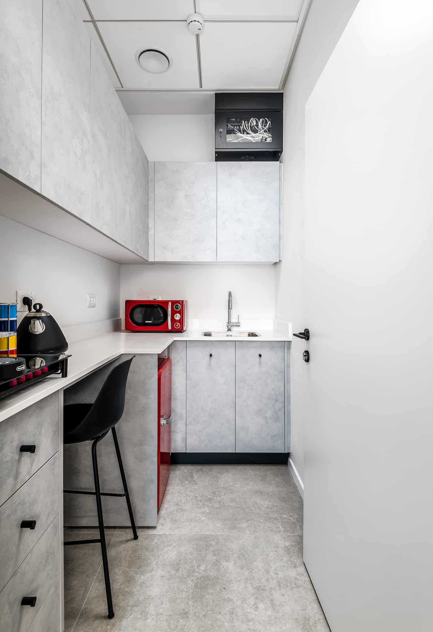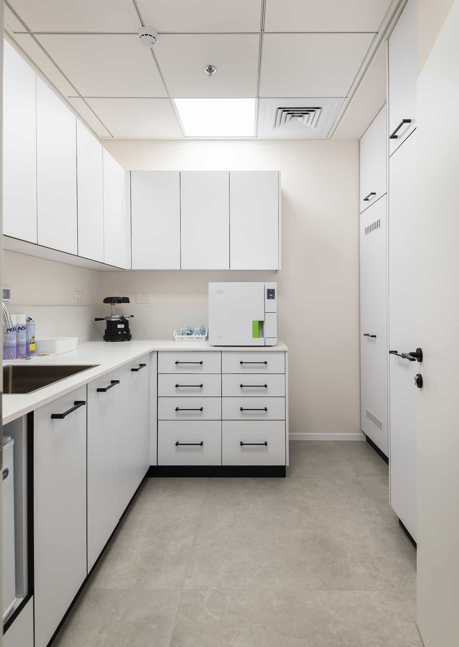 תכנון הנגרות כלל הרבה מאוד חשיבה בכדי ליצור מקום אסטרטגי לכל המכשור ובנוסף לתת מענה נכון ונעים בחלל כולו מבלי לתת תחושה של מרפאה בחלל הציבורי שבו הפציינטים ממתנים לצורך קבלת טיפול רפואי.