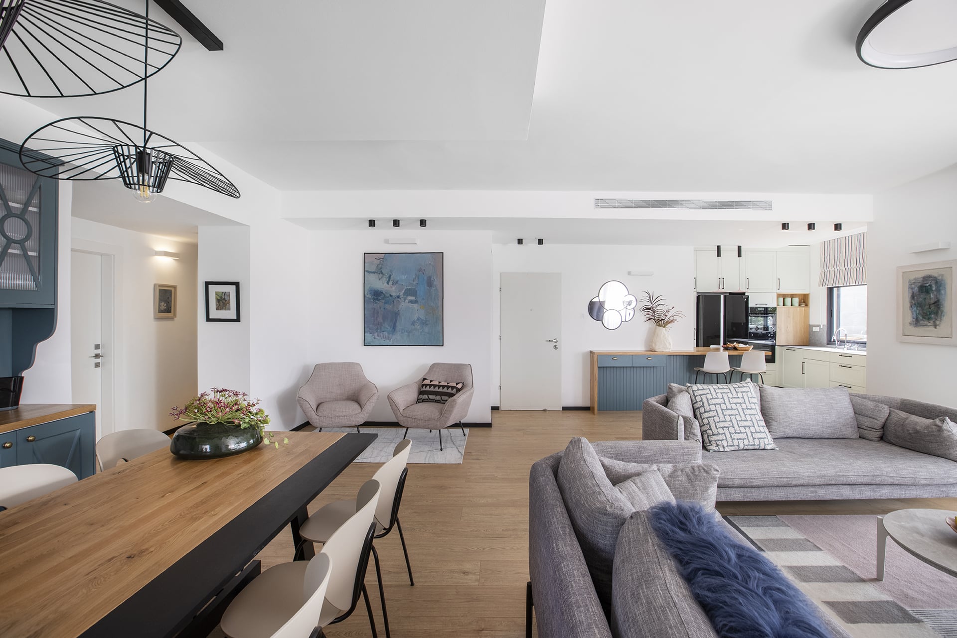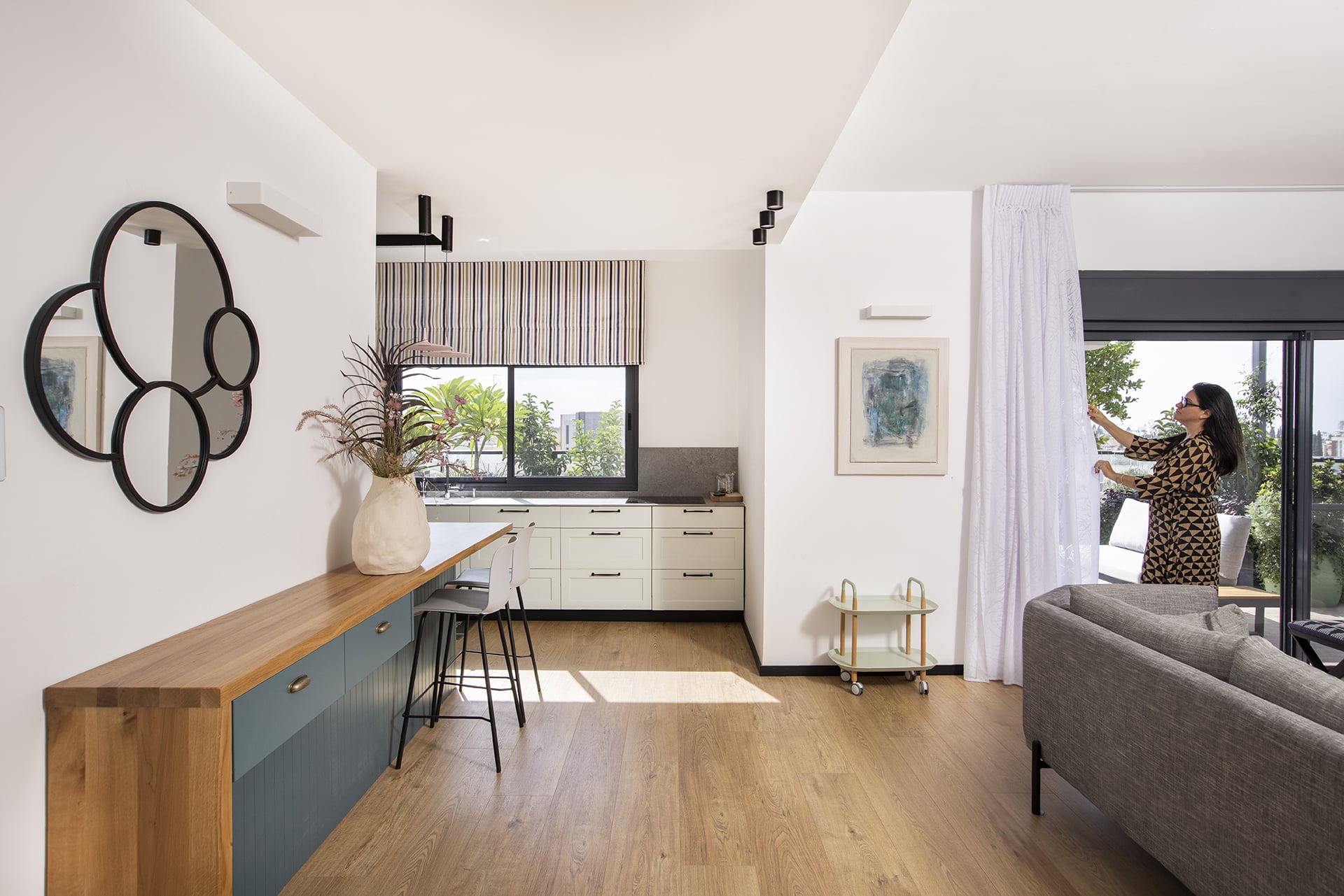 Ces dernières années, les projets « TAMA » dans la zone du Centre ont donné naissance à de nombreux appartements qui valent la peine d'être étudiés ; l'un d'eux est l'appartement Penthouse d’un couple d'une cinquantaine d'années, dont les enfants ont déjà grandi et ont quitté le foyer, conçu par l'architecte d'intérieur Mittal Zimber.