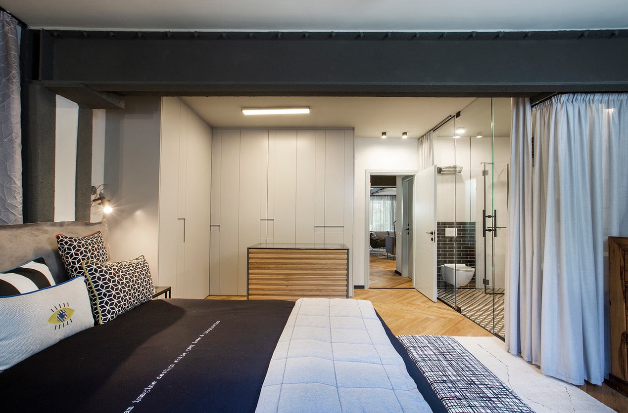 חיברנו בין 2 חדרים על-מנת לייצר סוויטת הורים גדולה ומפנקת במיוחד.