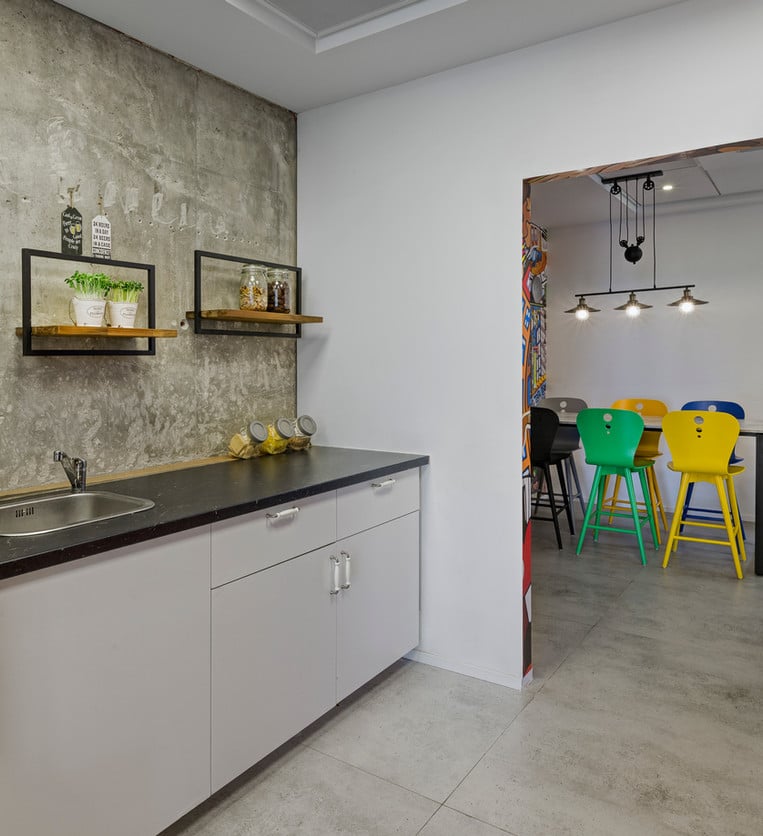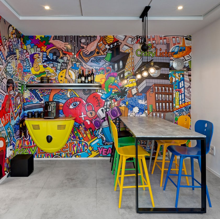 סכמת הצבעים הדינמית והמעוררת בעיצוב משרד זה, מתכתבת עם ערכיה ואופיה הצעיר של החברה. בעוד שמעטפת החדרים מתאפיינת בחומרים כמו ברזל ובטון, הריהוט והאקססוריז מאופיינים בחומרים חמים וצבעים עזים שיחד יוצרים מרחב אורבני שיקי עם קריצה ברורה לסגנון הפופ ארט.