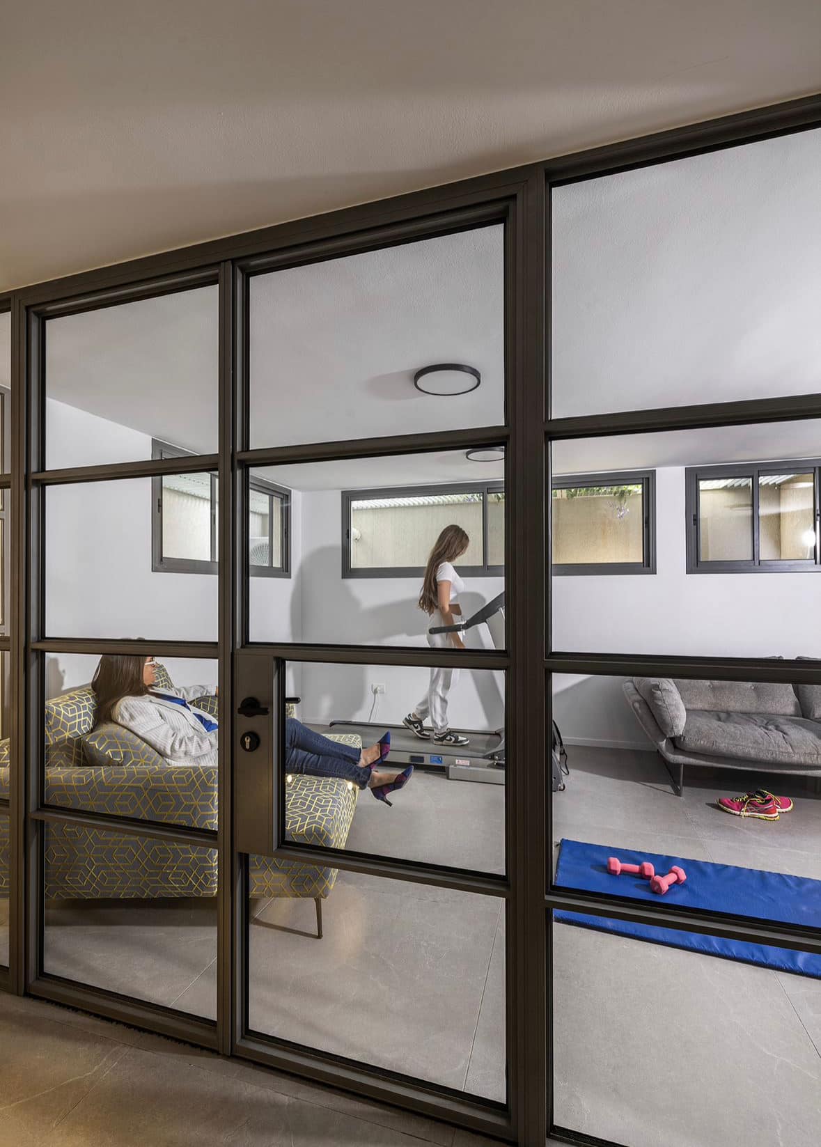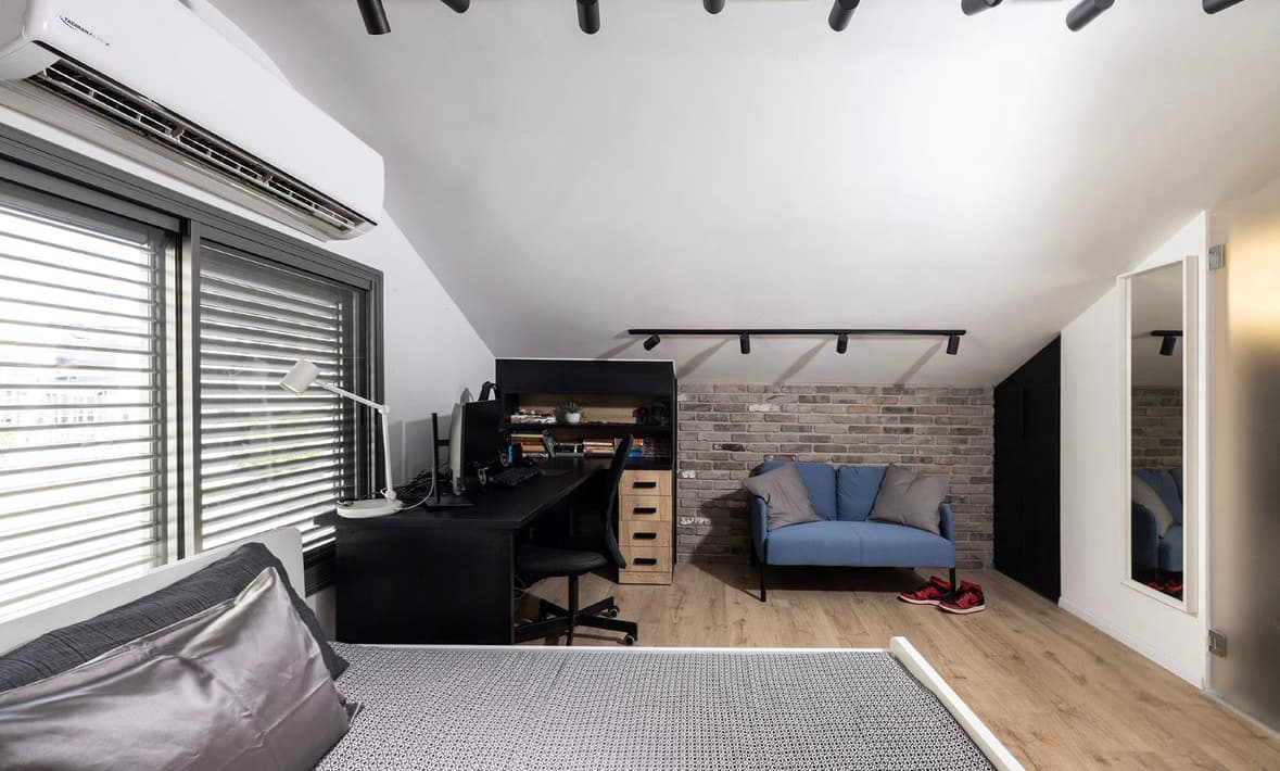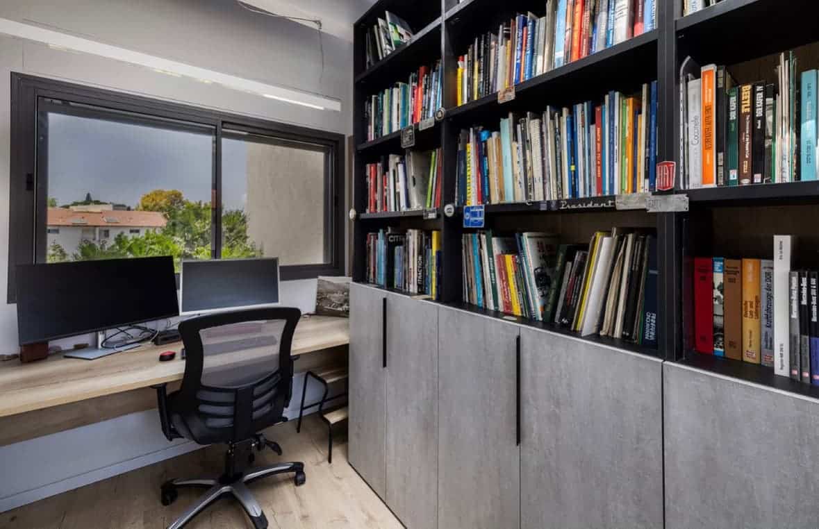 לבני הזוג, המרבים לעבוד מהבית, תוכננו ונבנו שני חדרי עבודה פונקציונליים.