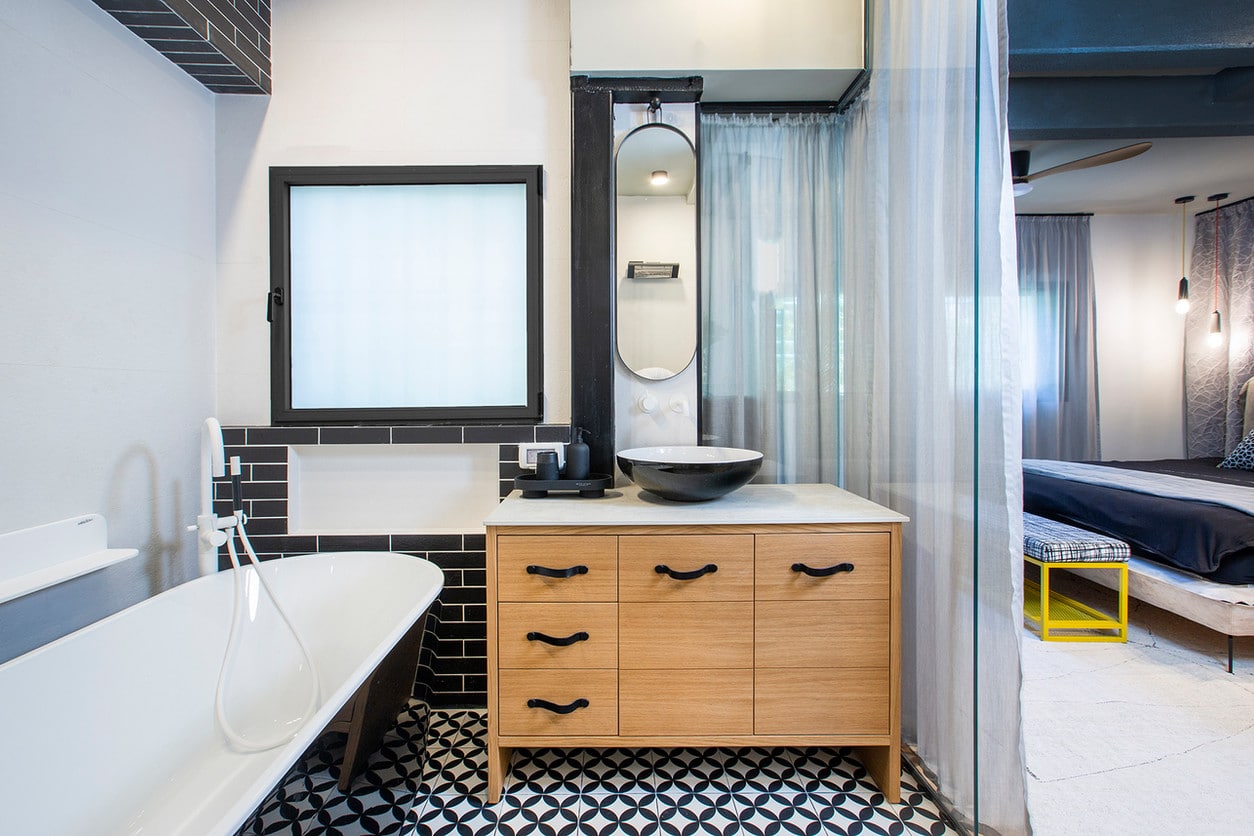 לאורך תהליך השיפוץ, הדגש היה על יצירת עיצוב פנים יוקרתי ומרווח עם פתרונות אחסון מותאמים אישית ושדרוגים תשתיתיים שנדרשו. שיפוץ דירת גן בתל אביב כלל גם יצירת חדרי רחצה מרווחים, שיפוץ שירותי אורחים שהפכו לאלמנט עיצובי דרמטי ושדרוג חדרי השינה כך שיתאימו לצרכים הנוכחיים של בני הבית.