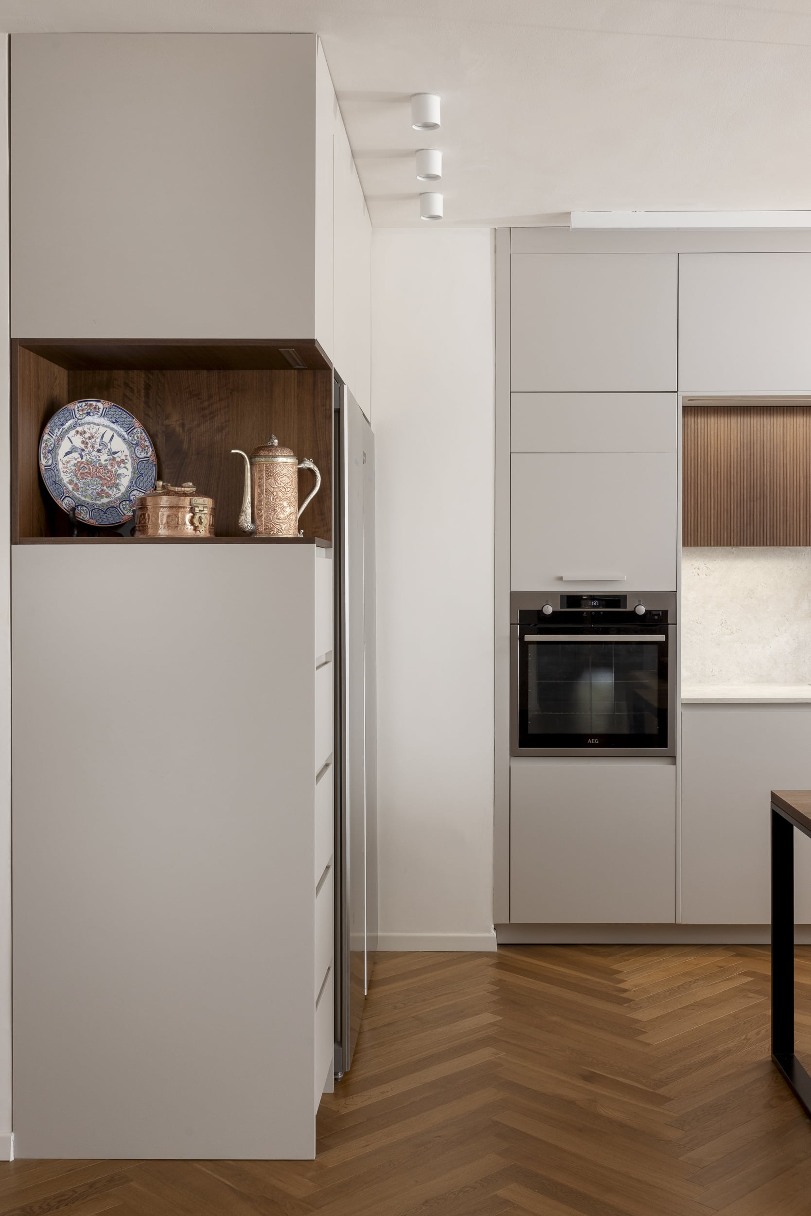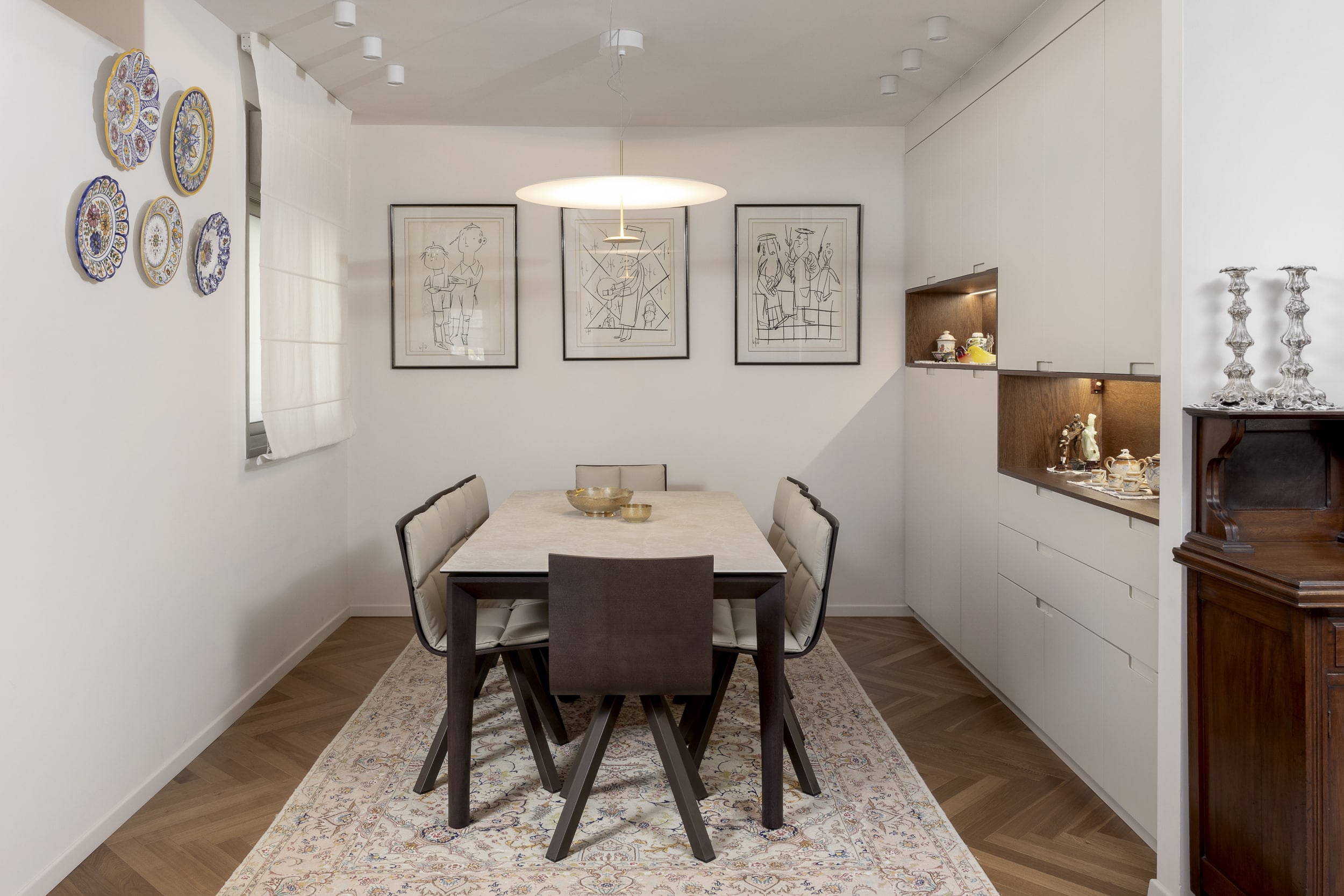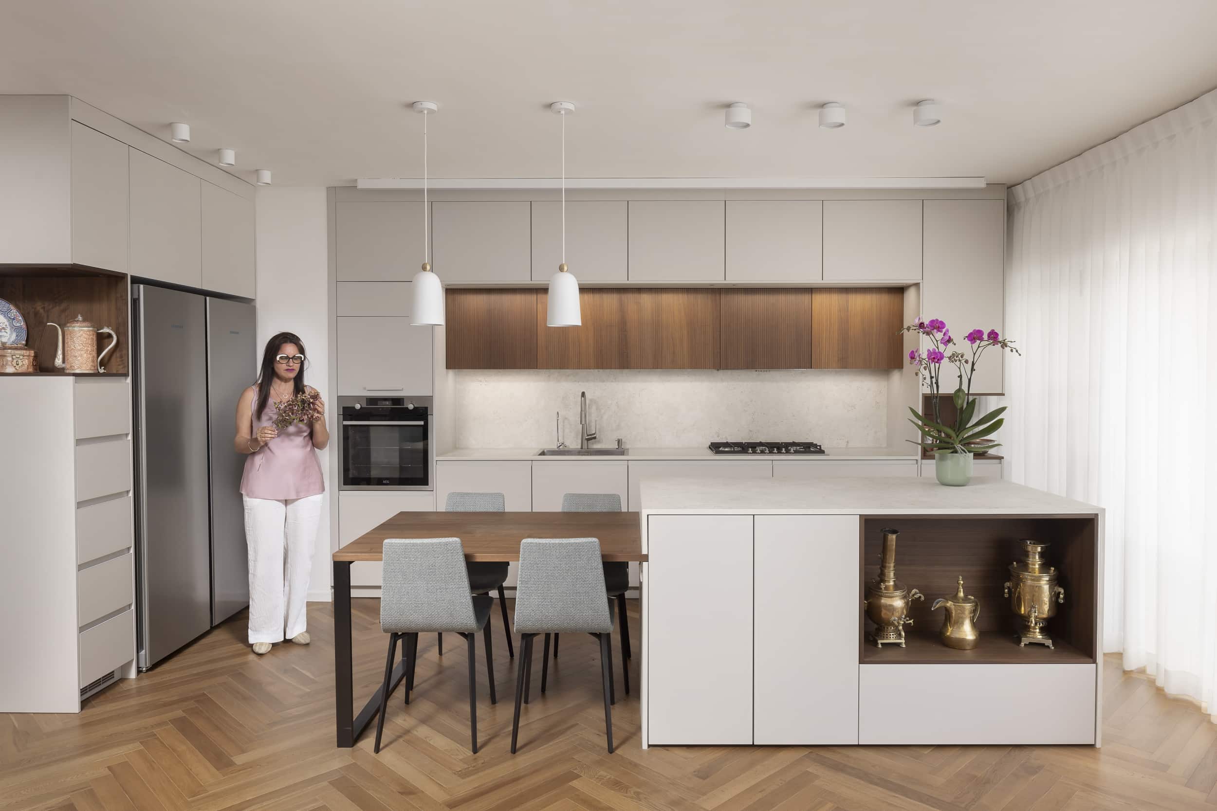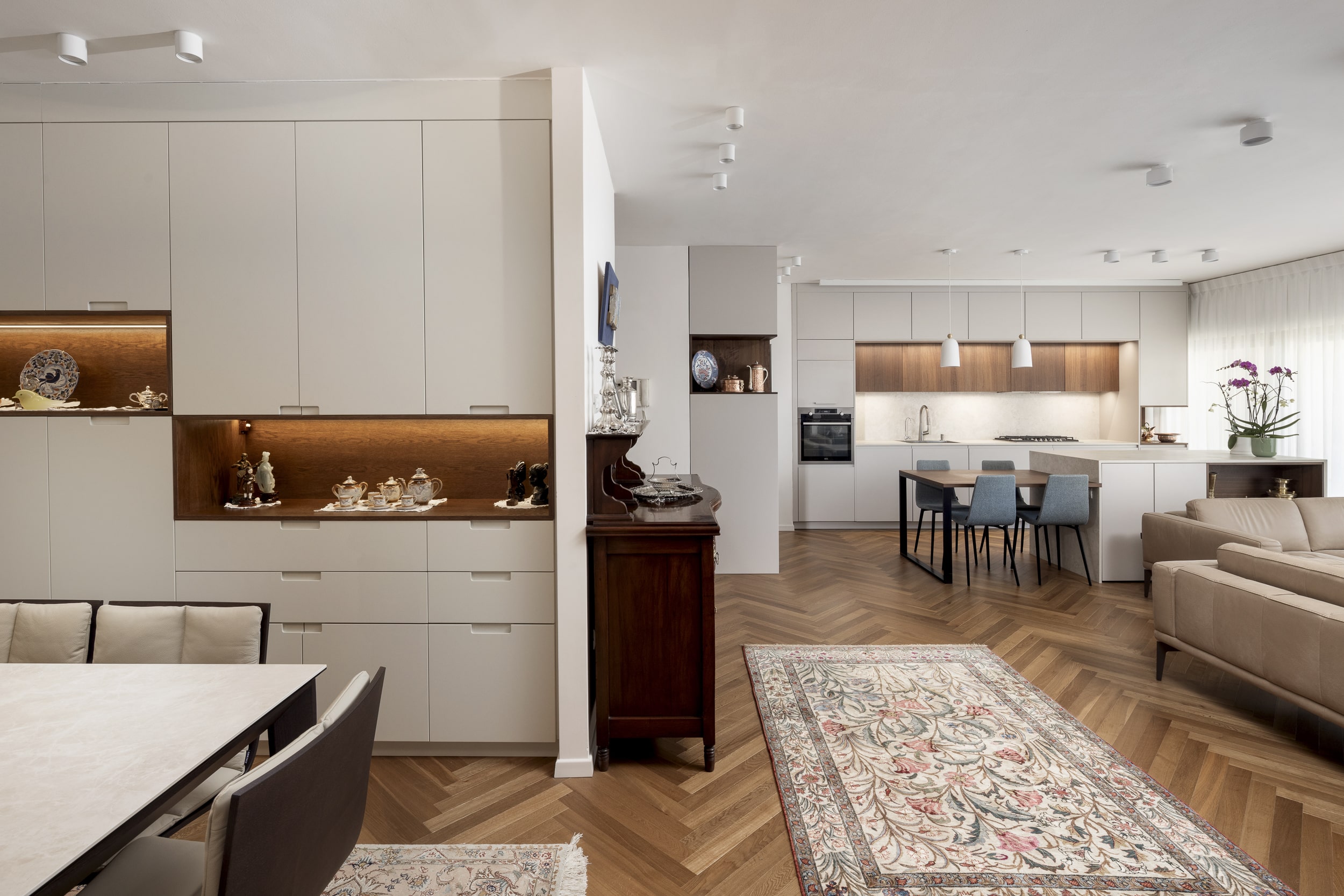 הלקוחה, אספנית של פריטי עיצוב, כלי כסף ואביזרי אירוח שאספה לאורך השנים, ביקשה לוודא שלכל פריט יהיה מקום – מבלי לוותר על מראה מודרני, מאוורר ומסודר.