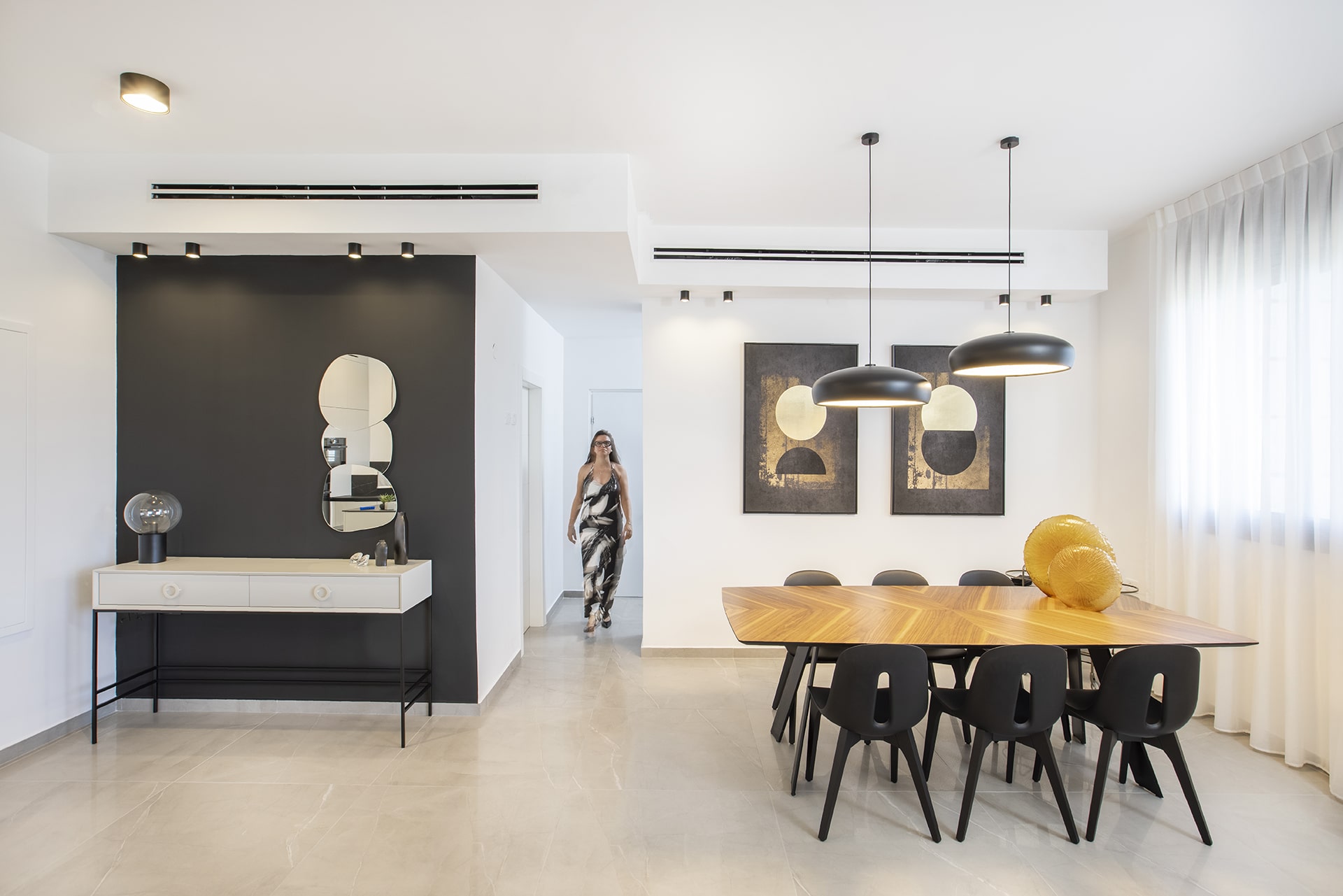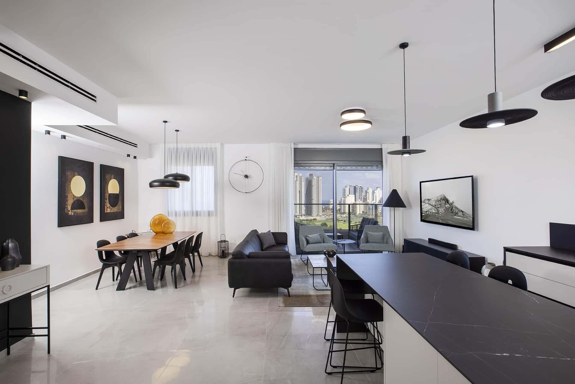 לאחר תכנון המטבח ובחירת החומרים השונים, התפנינו לבחירת דלתות פנים. בשלב זה, בחרנו דלתות פנים שיתאימו לעיצוב הכללי של הדירה ויביאו את המראה המודרני והיוקרתי שדרשנו. הדלתות נבחרו בקפידה כדי להתאים לשאיפות האסתטיות והפונקציונליות של הבית ולהשלים את המראה הכללי של החללים השונים.