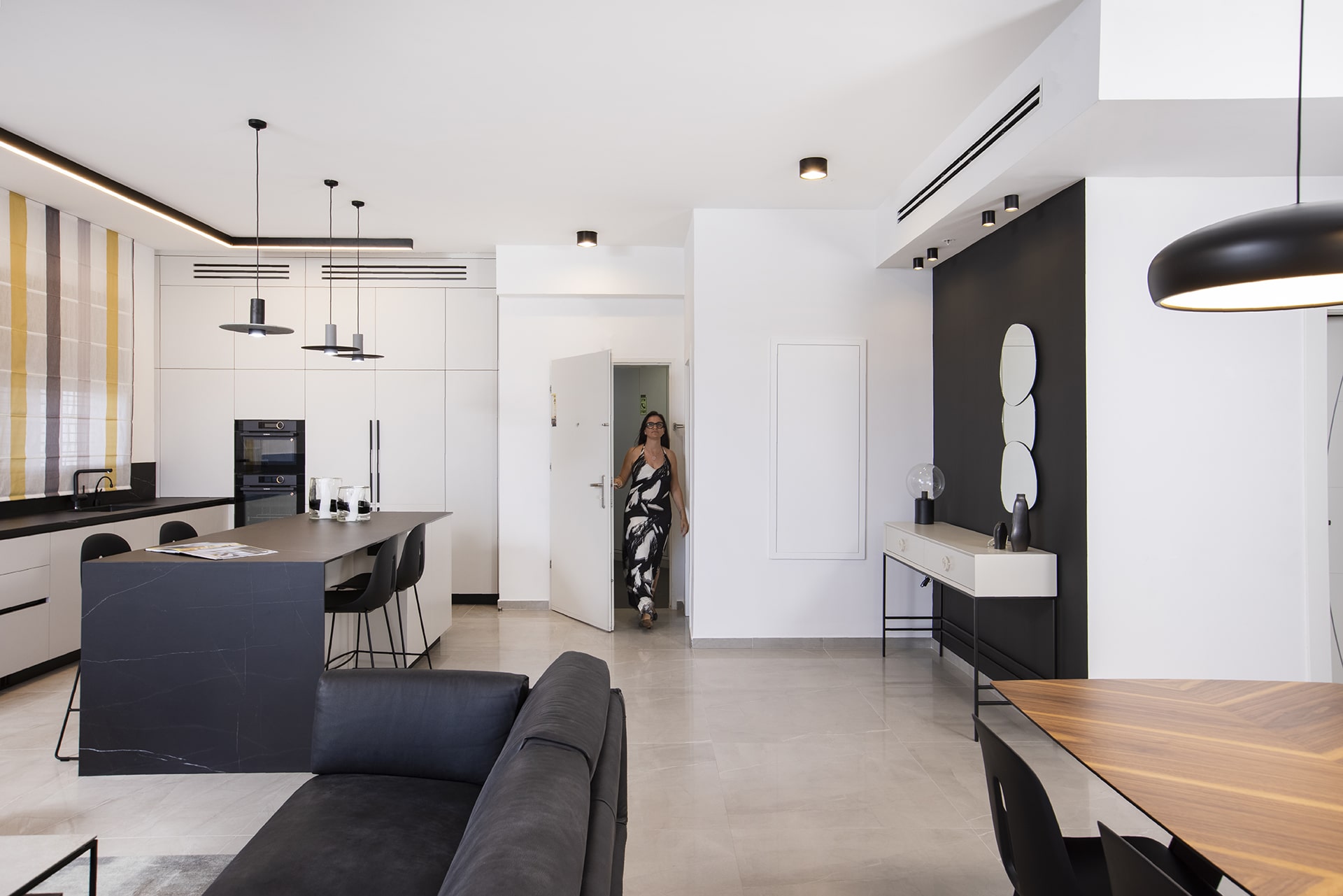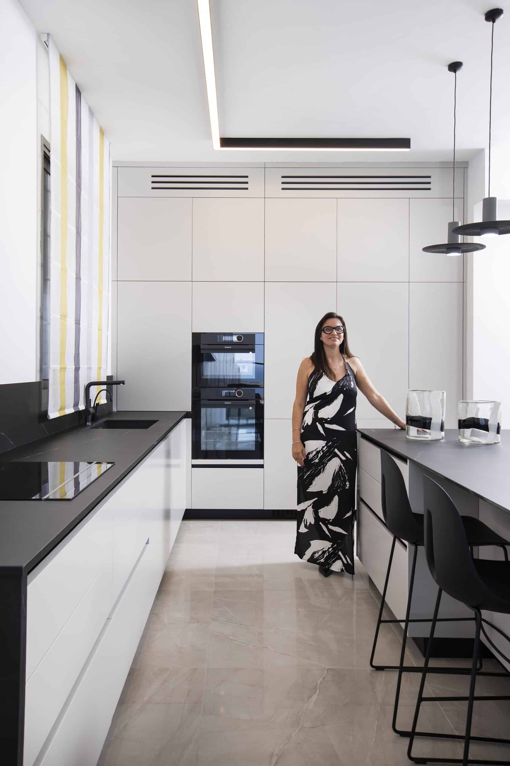 המטבח הוא לב הבית, ולכן תכנון מטבח היה שלב מרכזי בתהליך. תכננו יחד את המטבח המרשים, שיבטא את השאיפות של הלקוחה ויתאים לצרכים שלה. דאגנו לשלב בין פרקטיות לאסתטיקה, תוך תכנון נכון של המיקומים של מכשירים חשמליים, פתרונות אחסון, תאורה ומרחב עבודה. המטבח שוכן באופן שיתאים לאורח החיים שלה ויבטא את הסגנון האישי שלה.