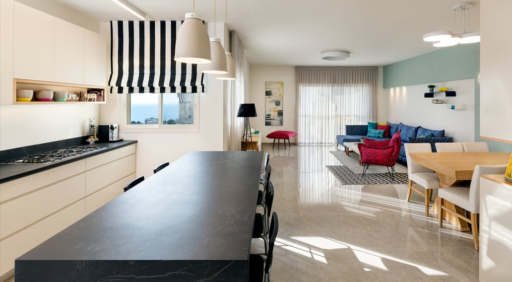 עיצוב דירת 5 חדרים בנתניה שם דגש על שילוב בין אסתטיקה ופונקציונליות: