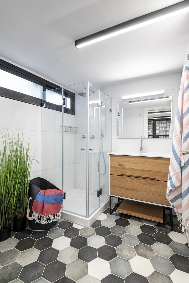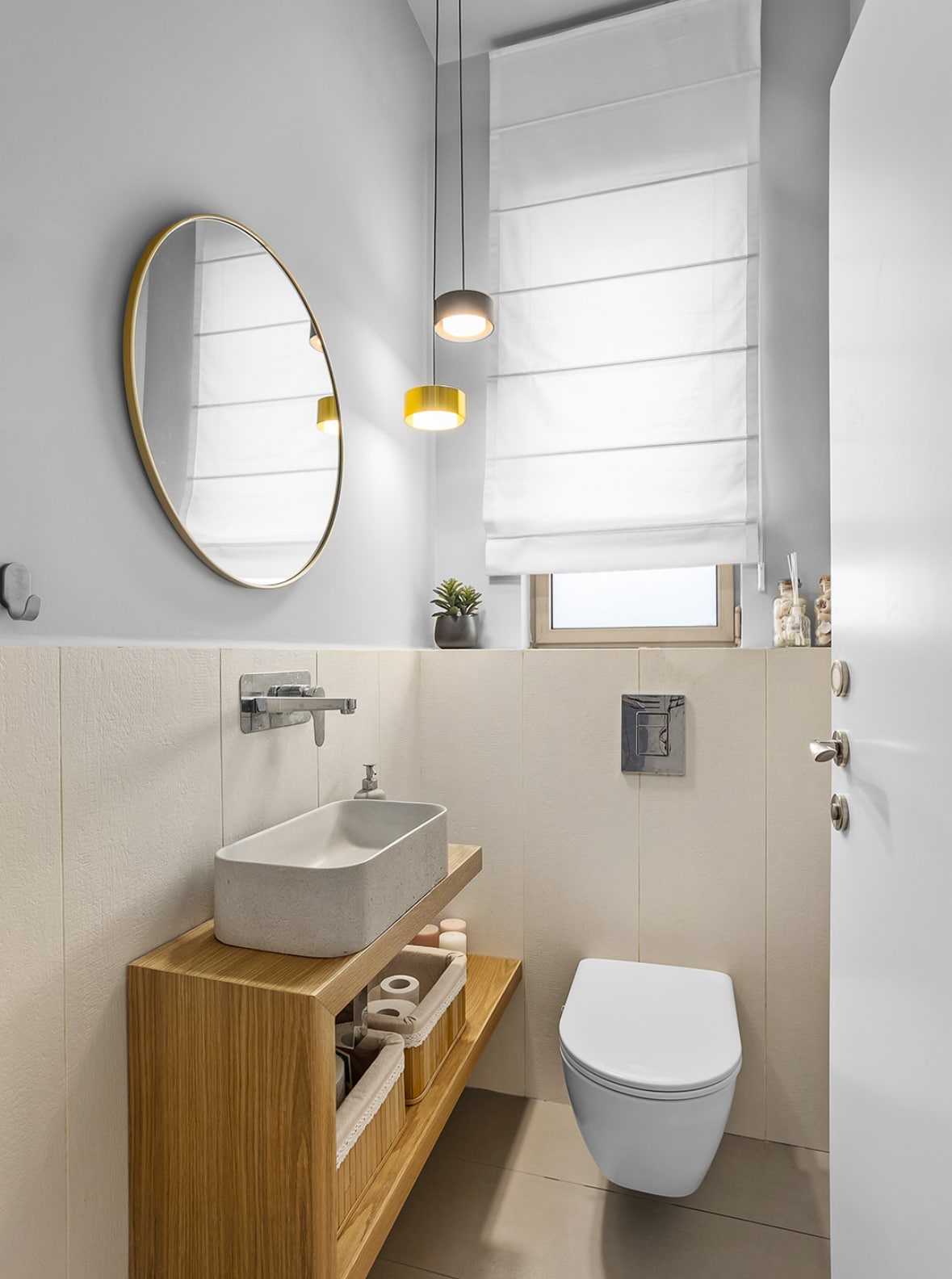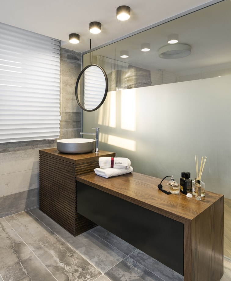 כך גם תכנון תאורה פונקציונלית ואווירתית אטומה ללחות ומים שיכולה לעשות פלאים במידה וחדר הרחצה פנימי יחסית וחשוף פחות לאור טבעי