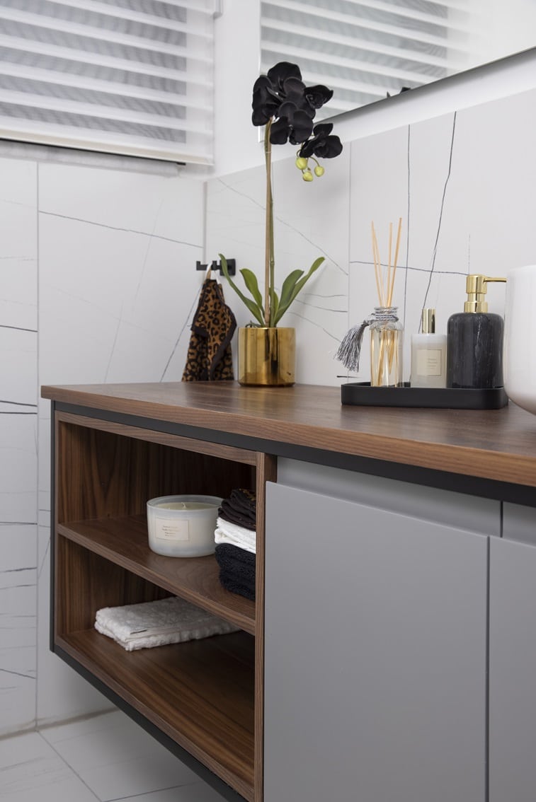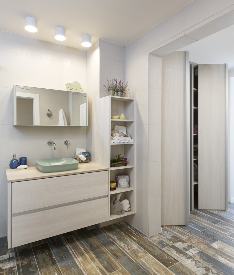 כחלק מתהליך עיצוב חדרי רחצה ניתן דגש רב על תכנון ארונות האמבטיה ושטחי אחסון עבור מגבות, כביסה, מוצרי קוסמטיקה, איפור ופרפומריה.
